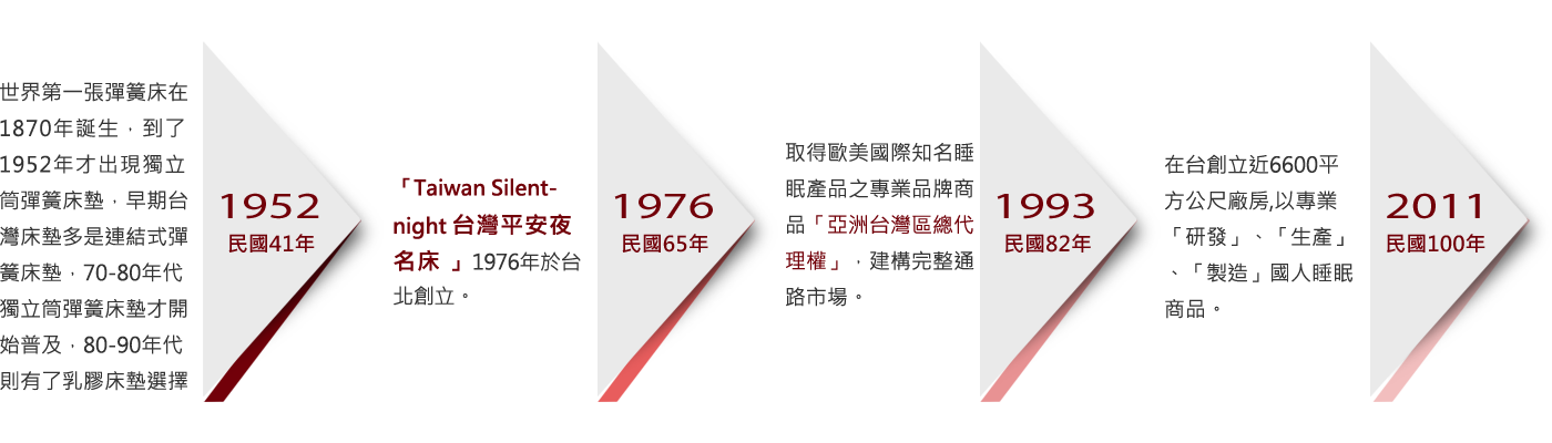成立於1976年的寢具品牌「平安夜名床」,是由創辦人江銘鑫董事長一手打造,畢生致力於健康睡眠研究的他,深知「好好睡覺」與「健康」息息相關,而一張好的床墊,就能改善睡眠品質,因此長年投入心力、不斷研發,在床科技上追求創新與突破,希望國人能以親民價格,擁有符合國際高品質的質感床墊,提供「無彈簧系列」、「獨立筒」,以及近年推出設計專利、符合人體工學的「新式電動按摩床」等多種床墊,滿足不同消費者需求,讓每個人都能健康舒眠。