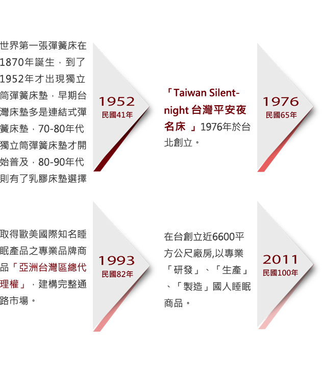 平安夜名床秉持提供平價高品質床墊的精神,從歐洲進口彈簧、布料、墊料等原料,以專業技術在台灣組裝完成床墊,讓國人不需花大錢就能擁有國際品質的好床。